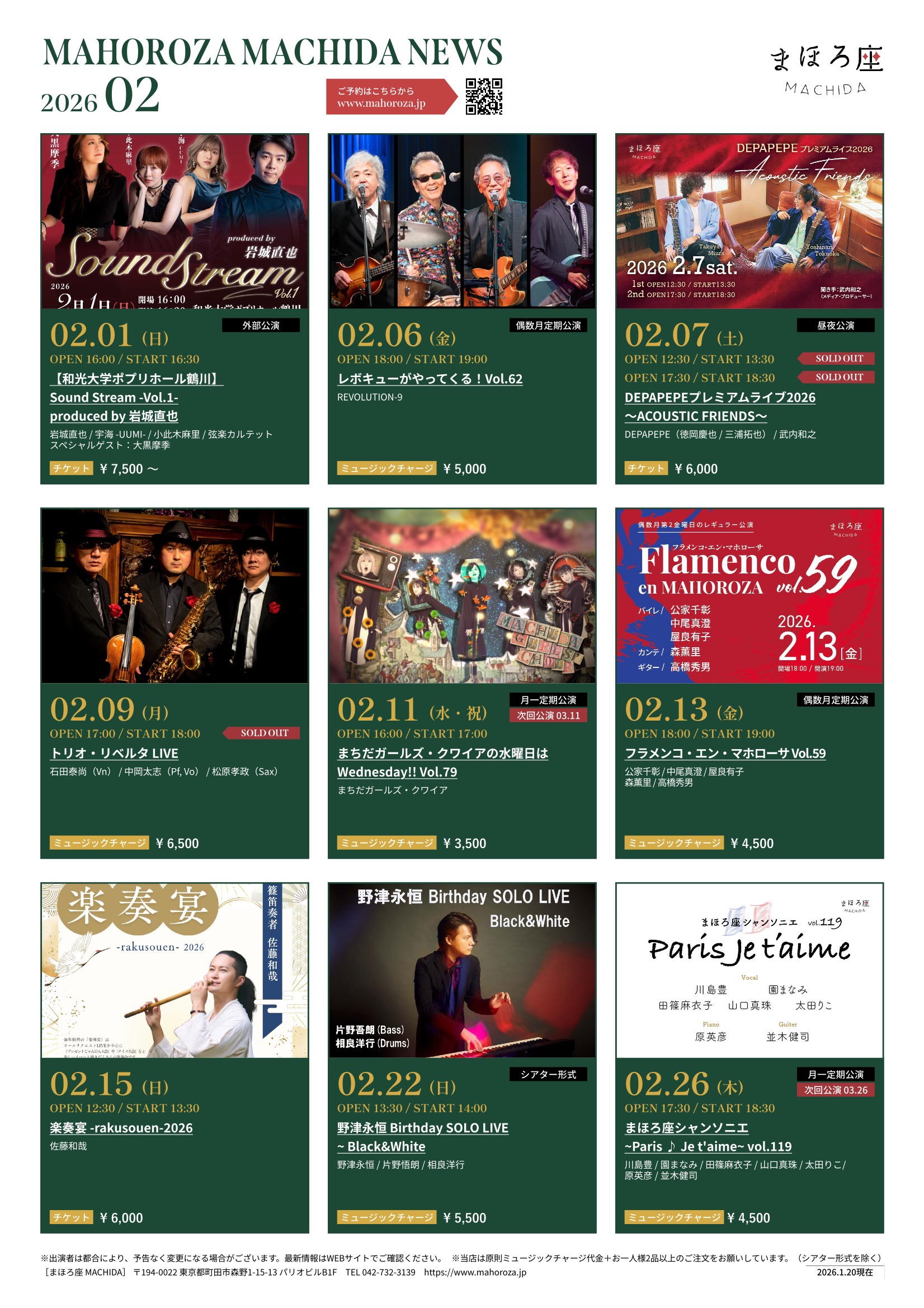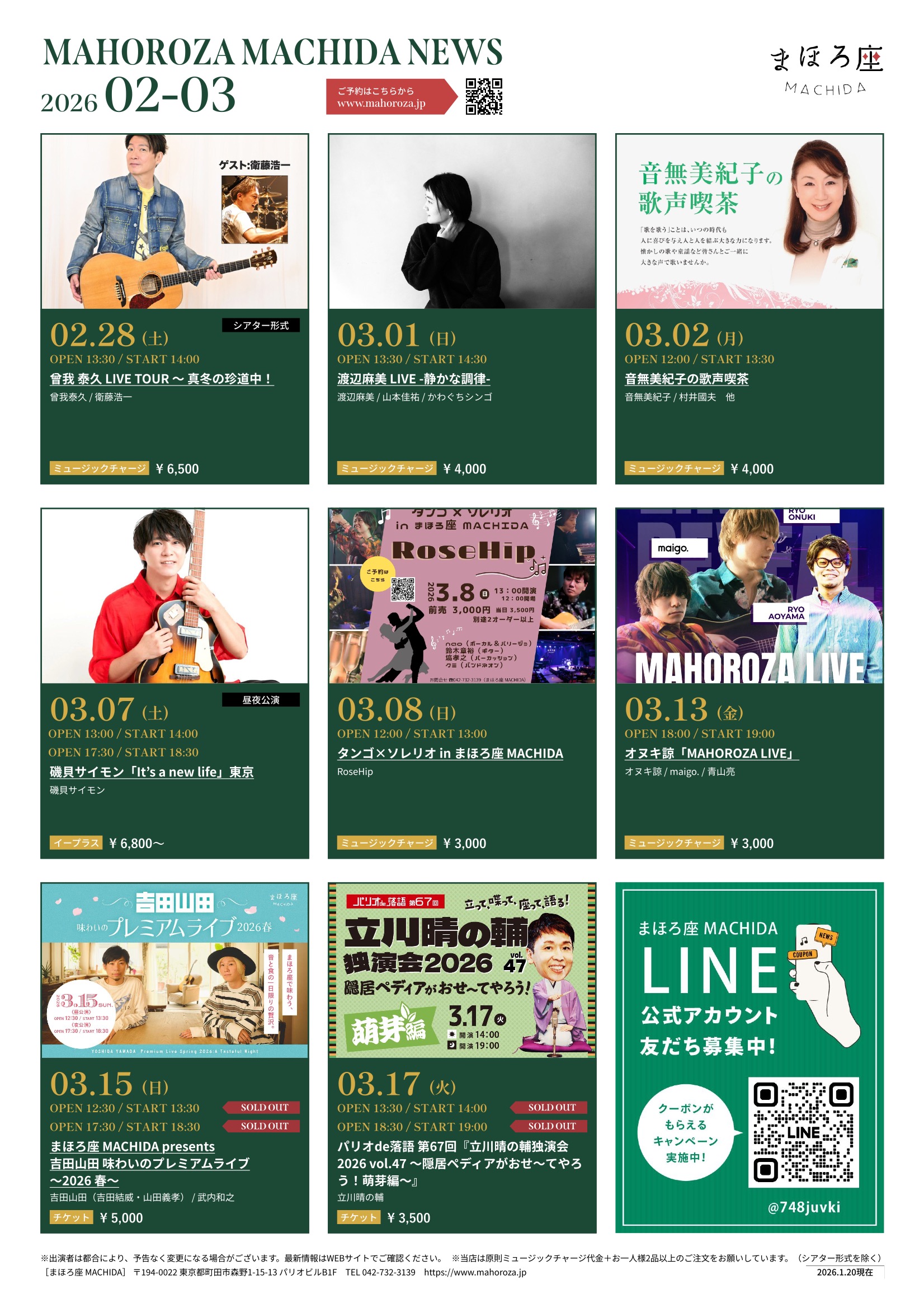 2026年2月のまほろ座 MACHIDAの公演スケジュールを公開しました。