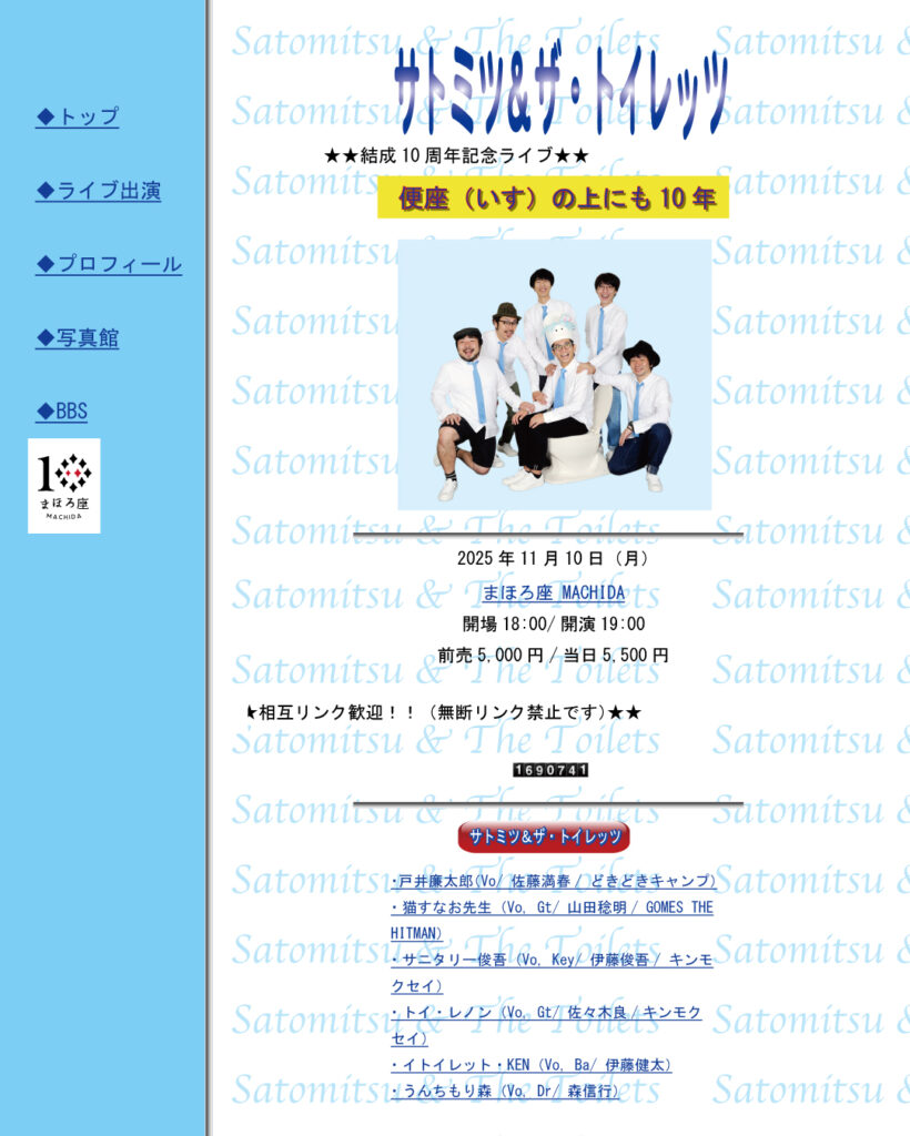 | イベント名 | サトミツ&ザ・トイレッツ 結成10周年記念ライブ 便座(いす)の上にも10年 |