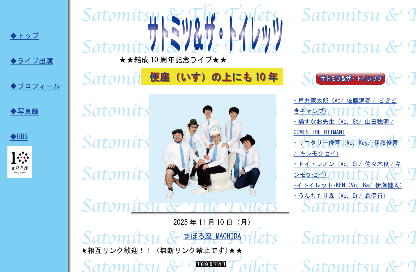 | イベント名 | サトミツ&ザ・トイレッツ 結成10周年記念ライブ 便座(いす)の上にも10年 |
