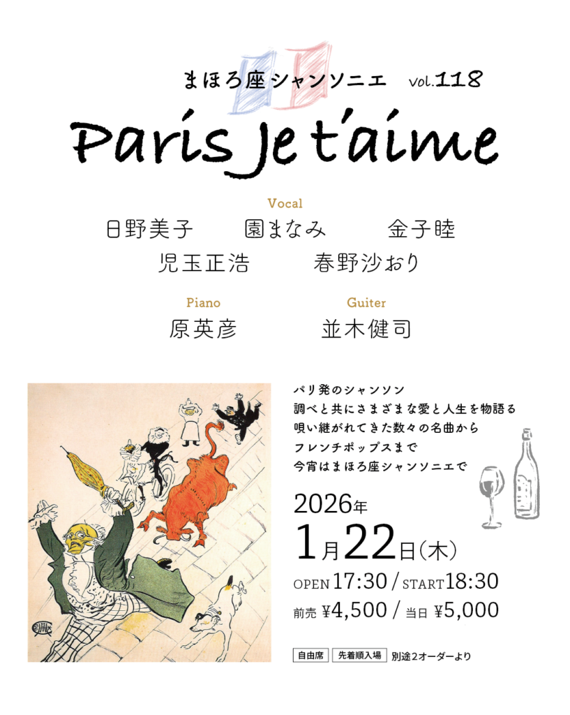 OPEN 17:30 / START 18:30まほろ座シャンソニエ ~Paris ♪ Je t’aime~ vol.95月一定期公演