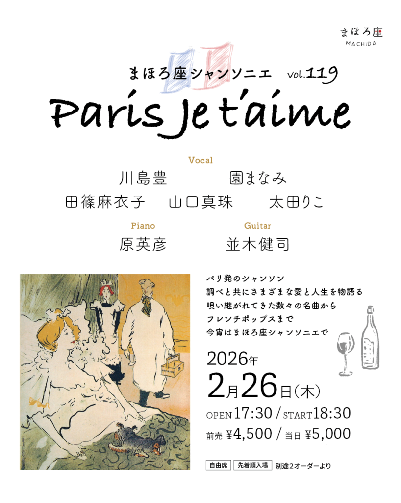 イベント名 まほろ座シャンソニエ ~Paris ♪ Je t’aime~ vol.119