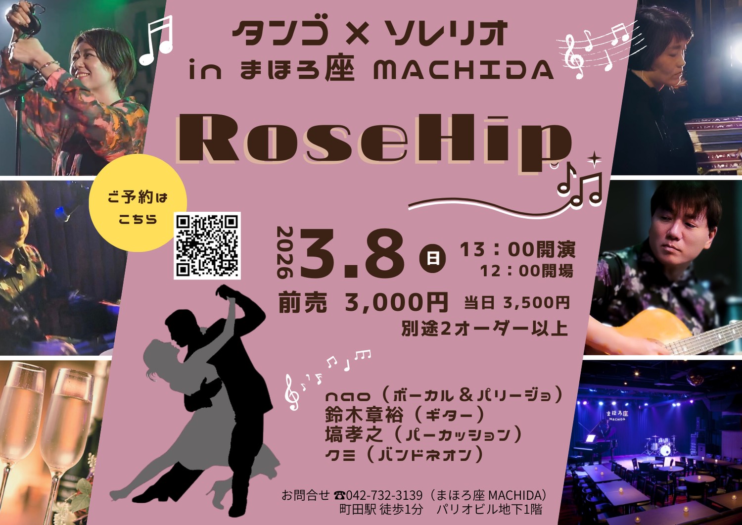 | 出演 | RoseHip ・nao(ボーカル&パリージョ) ・鈴木章裕(ギター) ・塙孝之(パーカッション) ・クミ(バンドネオン) |
