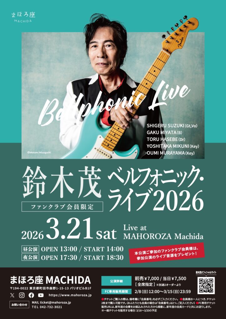 | イベント名 | 【2nd】鈴木茂ファンクラブ会員限定 ベルフォニック・ライブ2026 |