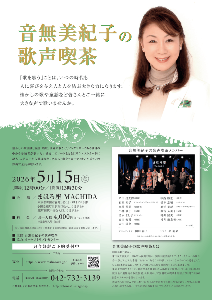 | イベント名 | 音無美紀子の歌声喫茶 |